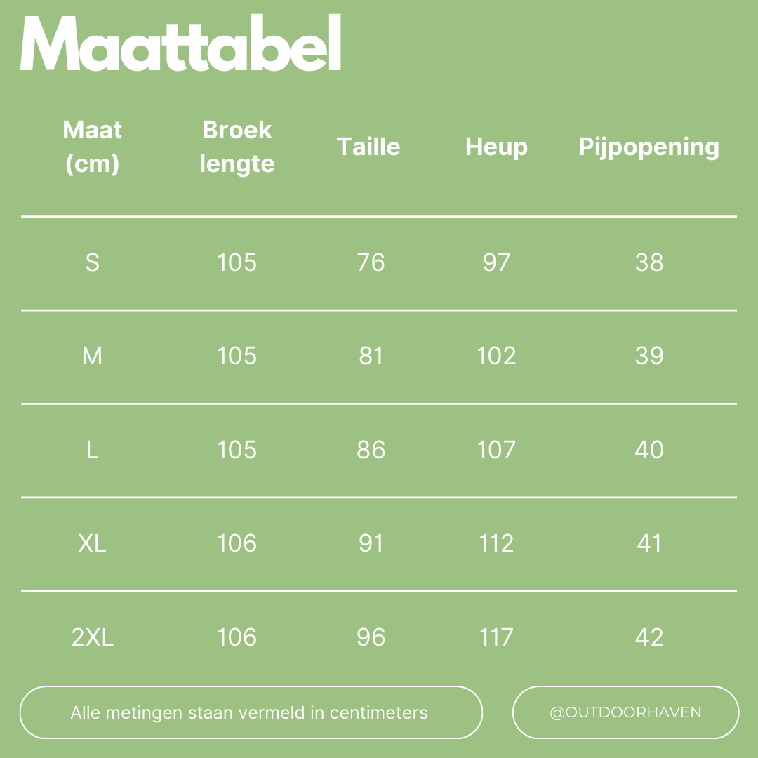 • Waterdicht ontwerp: Dankzij de hoogwaardige waterdichte materialen blijven uw benen droog, zelfs tijdens de zwaarste regenbuien.