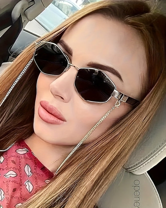 • Inclusief stijlvolle ketting: Praktisch en modieus, de ketting zorgt ervoor dat je je zonnebril niet kwijtraakt en voegt een extra fashion touch toe.